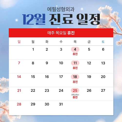 안녕하세요 에필성형외과입니다.2025년 12월 진료일정을 안내드립니다.---------------..
