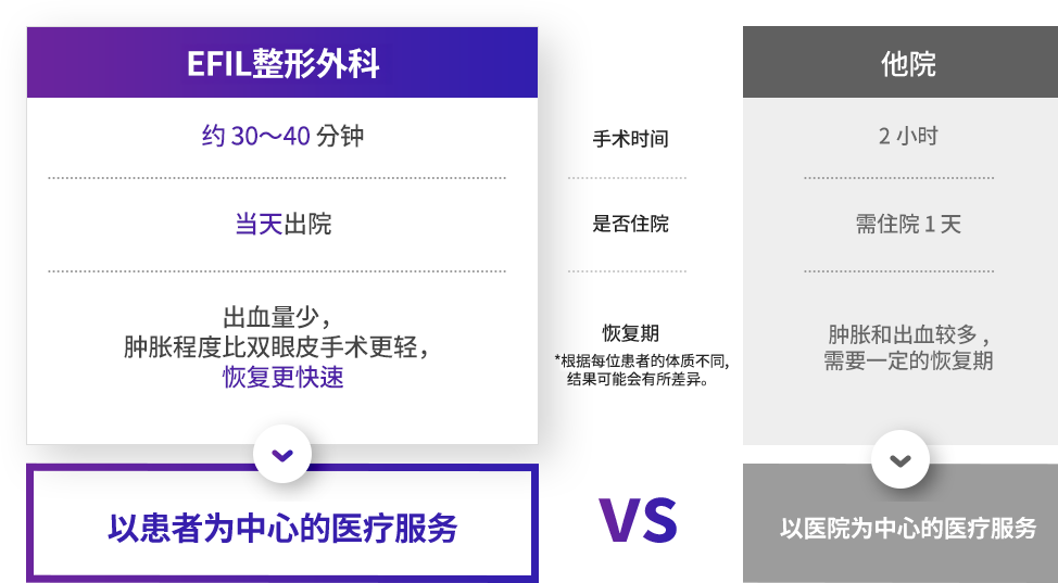 EFIL整形外科并非采用其他医院仅让眼睛“看起来凹进去”的方式,