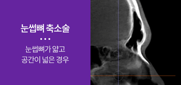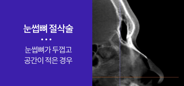 | 수술방법 | 최소 절개 신경손상 없이 섬세하게 눈썹뼈 절삭 or 밀어 넣어 직접 교정 |
