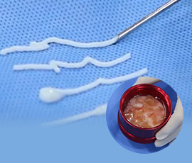 특징 | 늑연골 초미세 입자화 (0.1~0.2mm) 자발적 점성이 생겨 퍼지지 않아 근막에 쌀 필요 없음 | 늑연골 입자화 (3mm) 흐트러지지 않게 근막에 싸서 모양을 만들어야 함 |