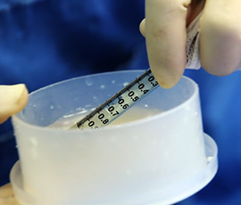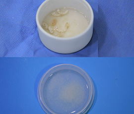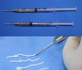 늑연골을 특수장비로 갈아 초미세 입자화 입자가 작아 자발적 점성이 생겨 퍼지지 않아 근막을 쌀 필요가 없음 |